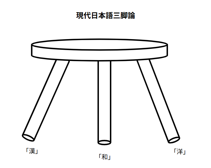 でも前者の解説にあるように、専門用語はほとんどが漢語や外来語です。アカデミックな話は和語だけではできないということです。ですから、和語は日本語の枠組みであり大事な柱の一本であって、漢語と外来語もそれぞれが一本の柱という三脚のテーブルのイメージが適していると思います。